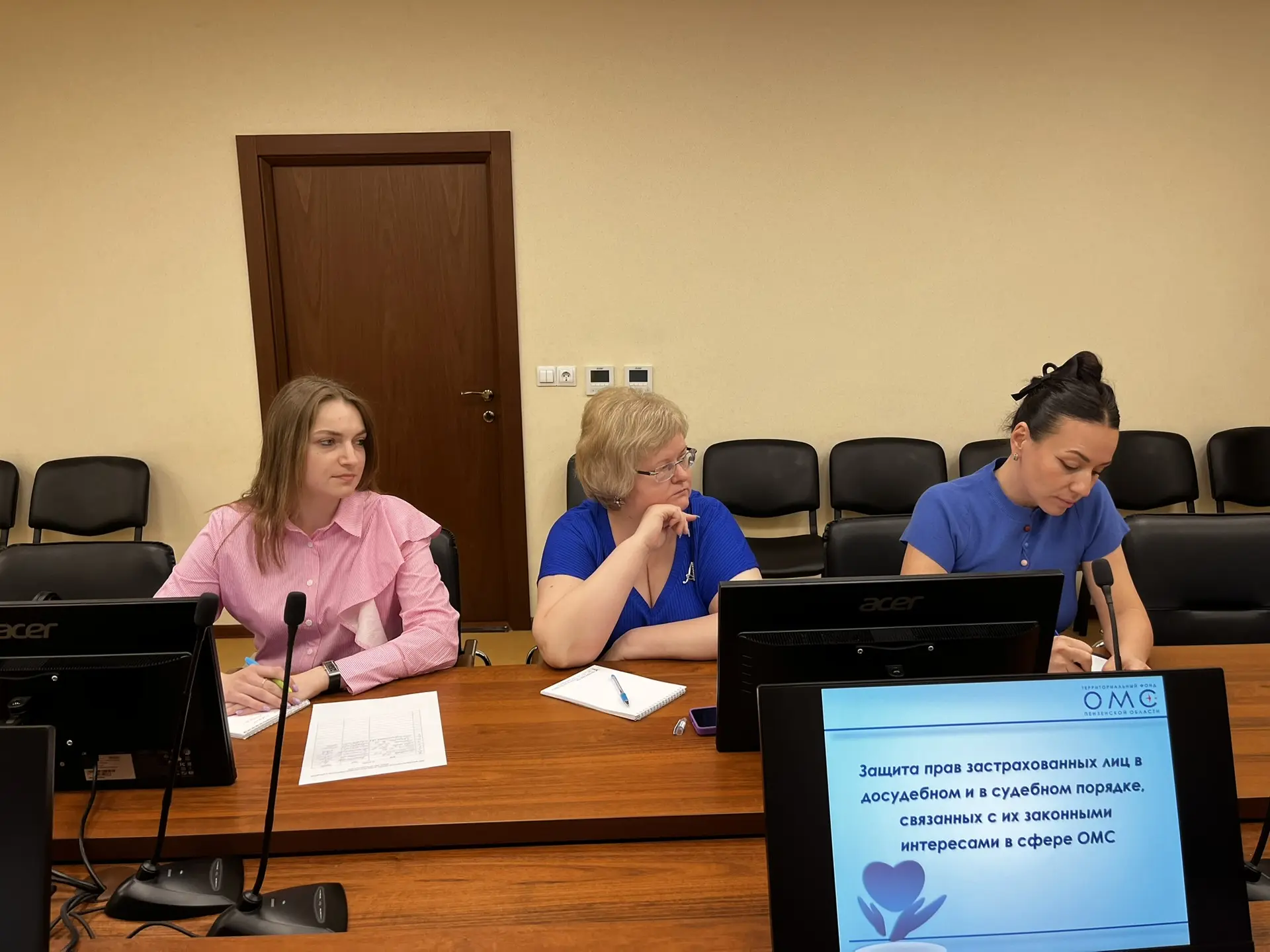 Перед присутствующими выступили с докладами начальник управления по обеспечению прав граждан в сфере ОМС Светлана Солодовникова и начальник отдела защиты прав граждан и информирования Светлана Усова