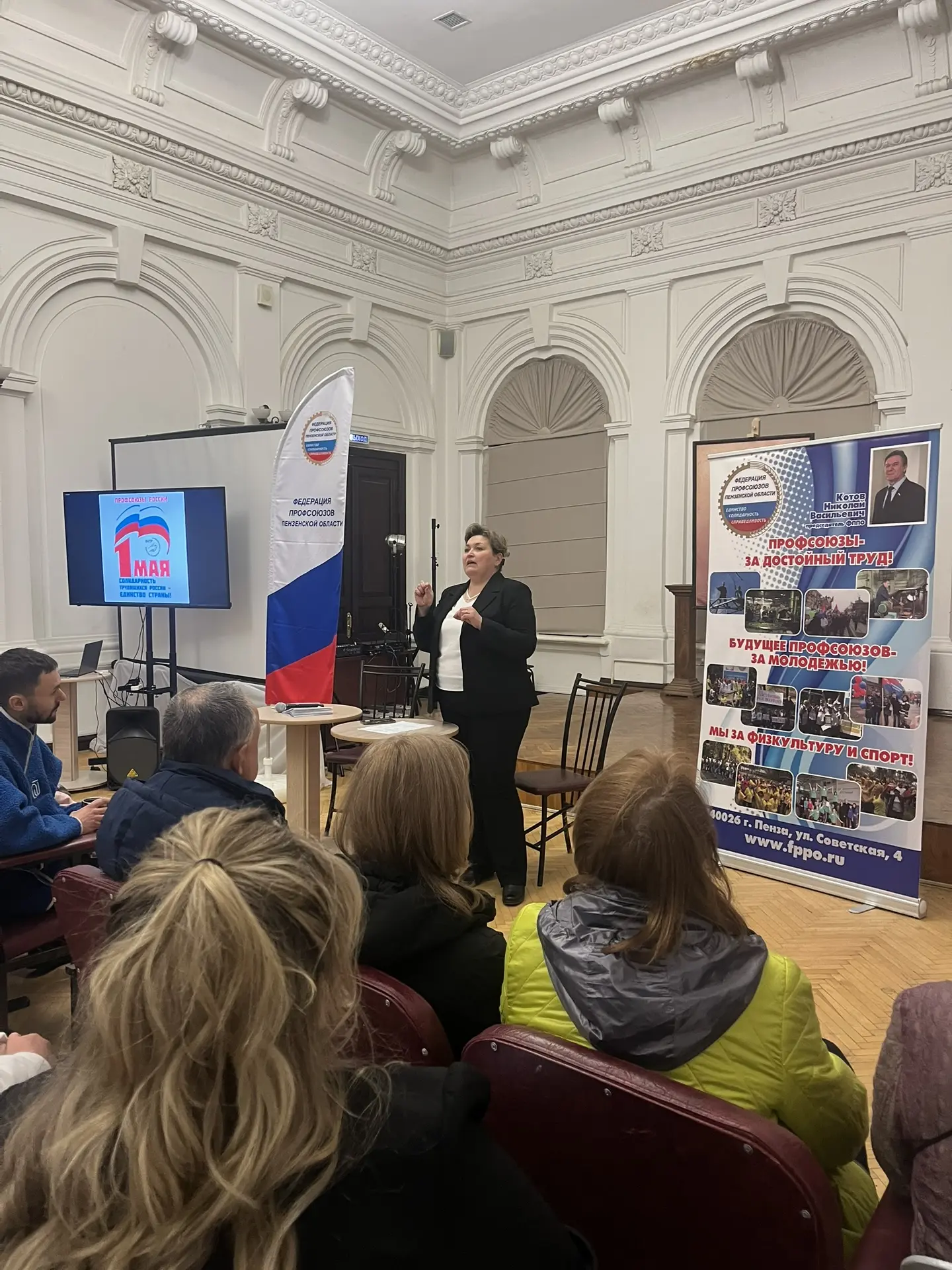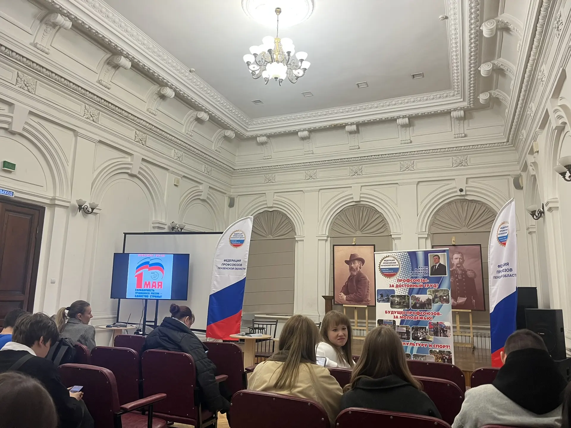 28 апреля 2026 года в Пензенском художественном училище им. К.А. Савицкого прошла платформа «Территория смыслов и замыслов», организованная в рамках Первомайской акции профсоюзов под девизом «Солидарность трудящихся России – единство страны!». На мероприятии присутствовали профсоюзные активисты различных организаций и учреждений, включая представителей Молодежного совета Территориального фонда обязательного медицинского страхования Пензенской области.